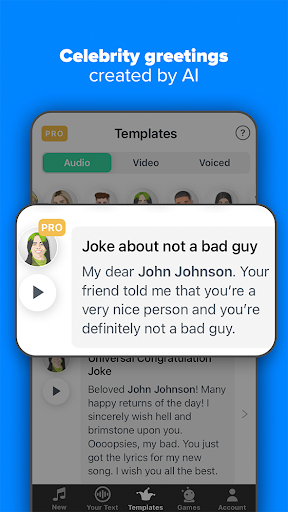 We hope you will have fun gaming and creating deep fake cameo parodies with celebs voiced by AI.